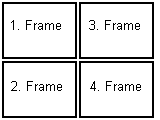 <frameset rows="50%,50%"> <frameset cols="50%,50%"> ... zwei Frames, deren Inhalt hier bestimmt wird... </frameset> <frameset cols="50%,50%"> ... zwei Frames, deren Inhalt hier bestimmt wird... </frameset> </frameset> |